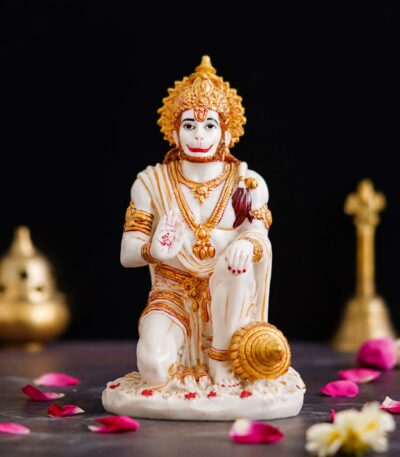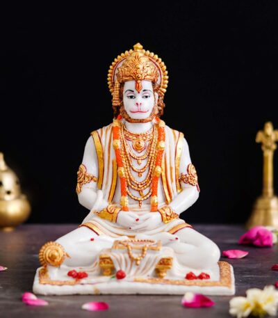 Hanuman Ji Marble Dust Murti Idol, Poly Marble Sitting Bajrang Bali for Pooja Temple Home Decoration Item Positive Envirement
